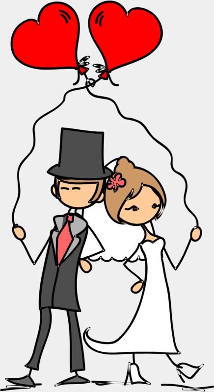 Cartoon Wedding Groom Bride Heart Balloons 5