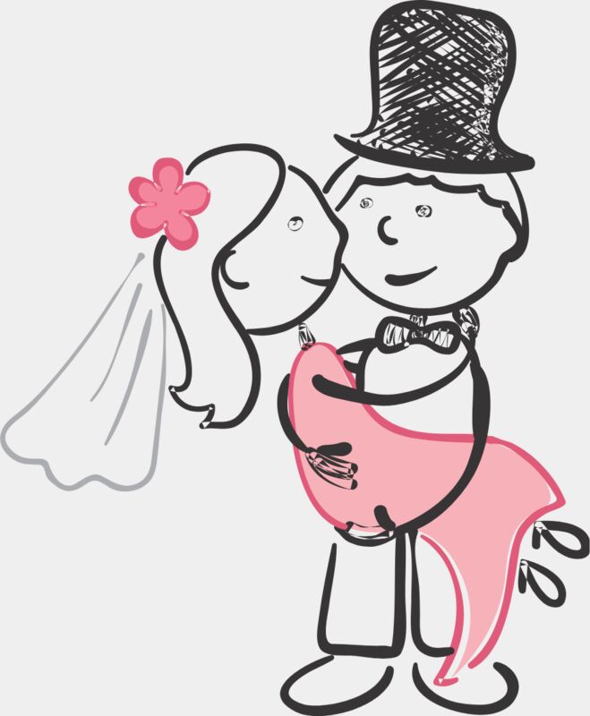 Cartoon Wedding Groom Bride Hug 5